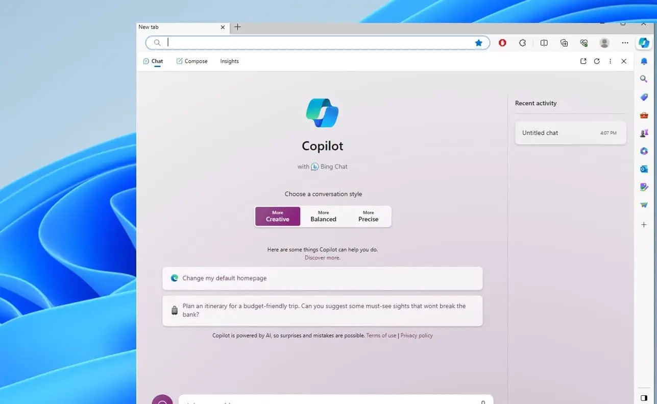 Сбалансированный режим — это режим по умолчанию, который дает вам информативные, логичные и действенные ответы. Режим «Точный» предназначен для случаев, когда вам нужны точные и основанные на фактах ответы, например, для выполнения домашнего задания или исследования. Творческий режим является самым захватывающим, поскольку он использует GPT-4 и Dall-E 3 для создания творческого контента, такого как стихи, рассказы, код, изображения и многое другое.