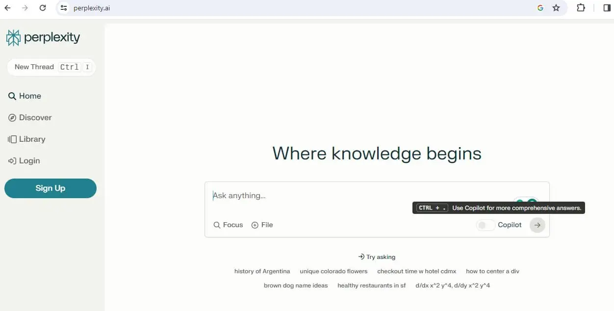 - Посетите официальный сайт Perplexity AI и зарегистрируйте учетную запись.