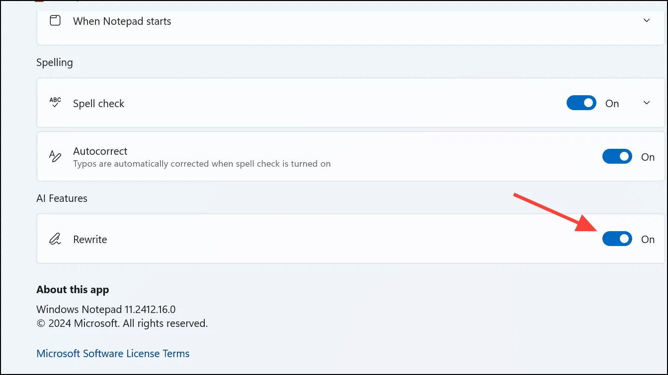 Прежде чем начать, убедитесь, что ваше приложение «Блокнот» для Windows 11 обновлено до версии 11.2412.16.0 или более поздней. Вы можете обновить «Блокнот» через Microsoft Store. Также убедитесь, что вы вошли в свою учетную запись Microsoft, так как функция «Перезапись» требует аутентификации.