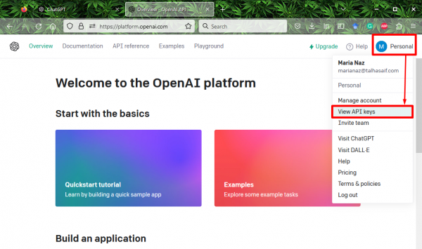 Чтобы получить ключ API ChatGPT, сначала выполните перенаправление в свою учетную запись ChatGPT.